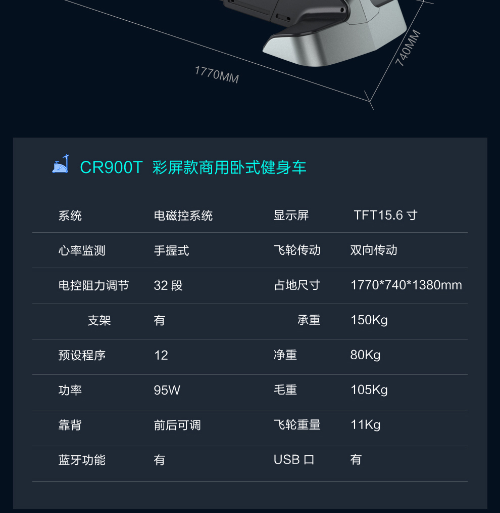 好博商用卧式单车CR900T磁控车自发电健身车健身房专用